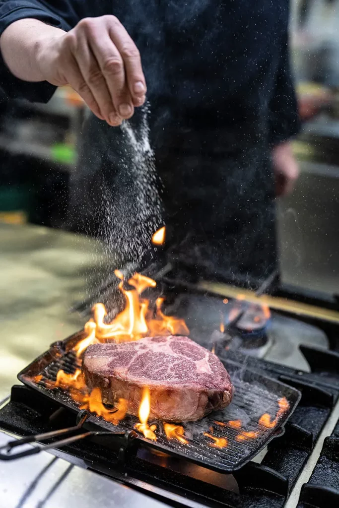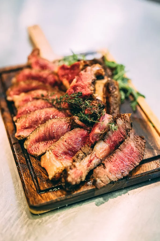 - Bœuf Angus en filet ou en Tagliata, béarnaise, légumes et pommes frites maison 41€