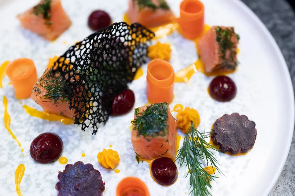 - Salmon gravlax flavored with citrus