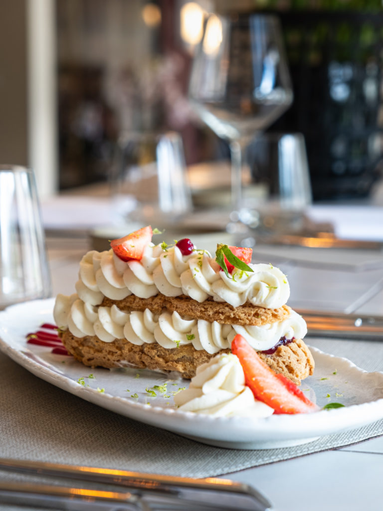 - Les Saint Jacques snackées, purée de panais et velouté de poisson à la pomme 27€