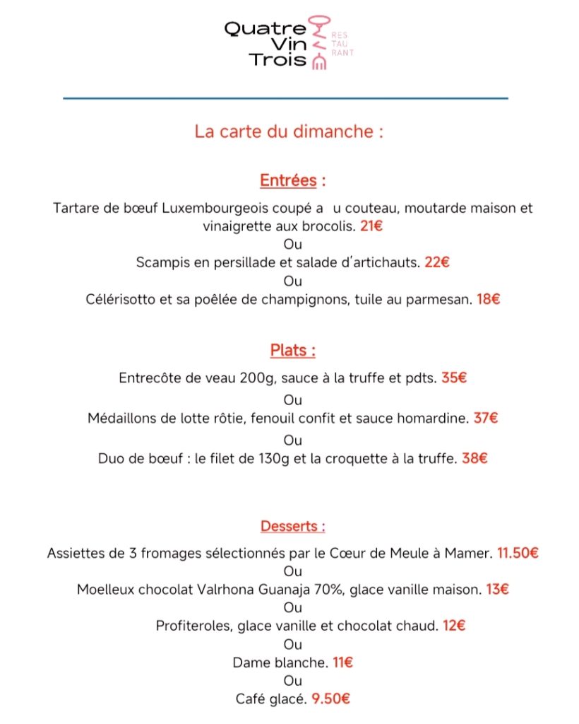 Chaque dimanche, nous vous proposons une carte entièrement renouvelée, pensée pour surprendre vos papilles et vous faire découvrir de nouvelles saveurs. Le reste de la semaine, retrouvez notre carte habituelle, celle que vous aimez, avec tous vos plats préférés. Une belle façon d’allier découverte et repères, pour que chaque visite soit un plaisir unique.